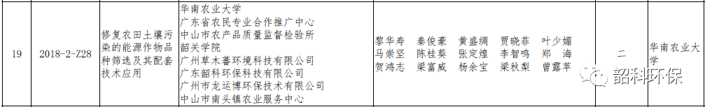 我司參與“修復農(nóng)田土壤污染的能源作物品種篩選及其配套技術(shù)應用項目”獲得2018年度廣東省農(nóng)業(yè)技術(shù)推廣二等獎