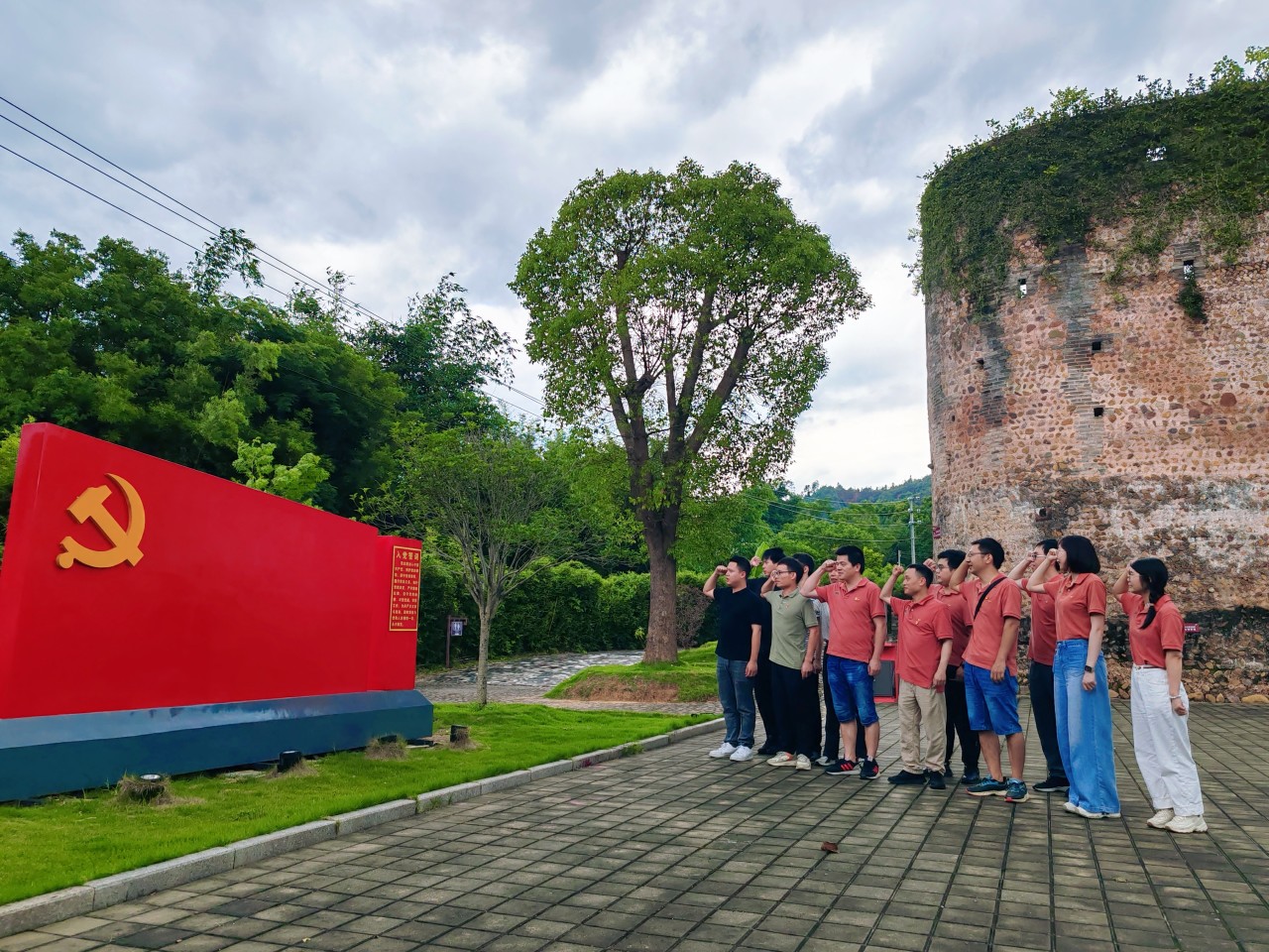 參加活動的黨員同志們一同參觀了廣東省委機關(guān)舊址——紅圍,通過觀看宣傳欄里留下的珍貴歷史照片和文字記載的歷史變遷,了解這座近200年歷史的圍樓,歷經(jīng)歲月的滄桑與戰(zhàn)火的洗禮至今仍然屹立不倒,感受在那血雨腥風(fēng)的歲月里,中共廣東省委從這里發(fā)出的紅色電波,保持著與黨中央的密切聯(lián)系,指揮南方地區(qū)的抗日戰(zhàn)爭工作。隨后,大家在紅圍前,面對黨旗莊嚴地舉起右拳重溫了入黨誓詞,緬懷老一輩革命先烈的崢嶸歲月,感悟先輩不怕犧牲的英雄事跡,激發(fā)黨員奮斗精神和干事創(chuàng)業(yè)動力。